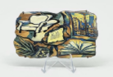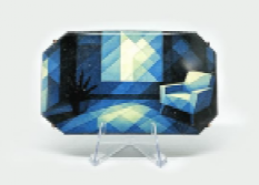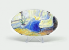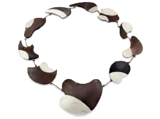 创作者利⽤紫铜和银通过不同⼯艺技巧进⾏结合,将传统的错⾦银⼯艺⽂化延伸到了更⼴泛的风格上。紫铜和银的强烈⾊彩对⽐为作品提供了充分的装饰效果,描述冬雪覆盖枯树、大地的景象。