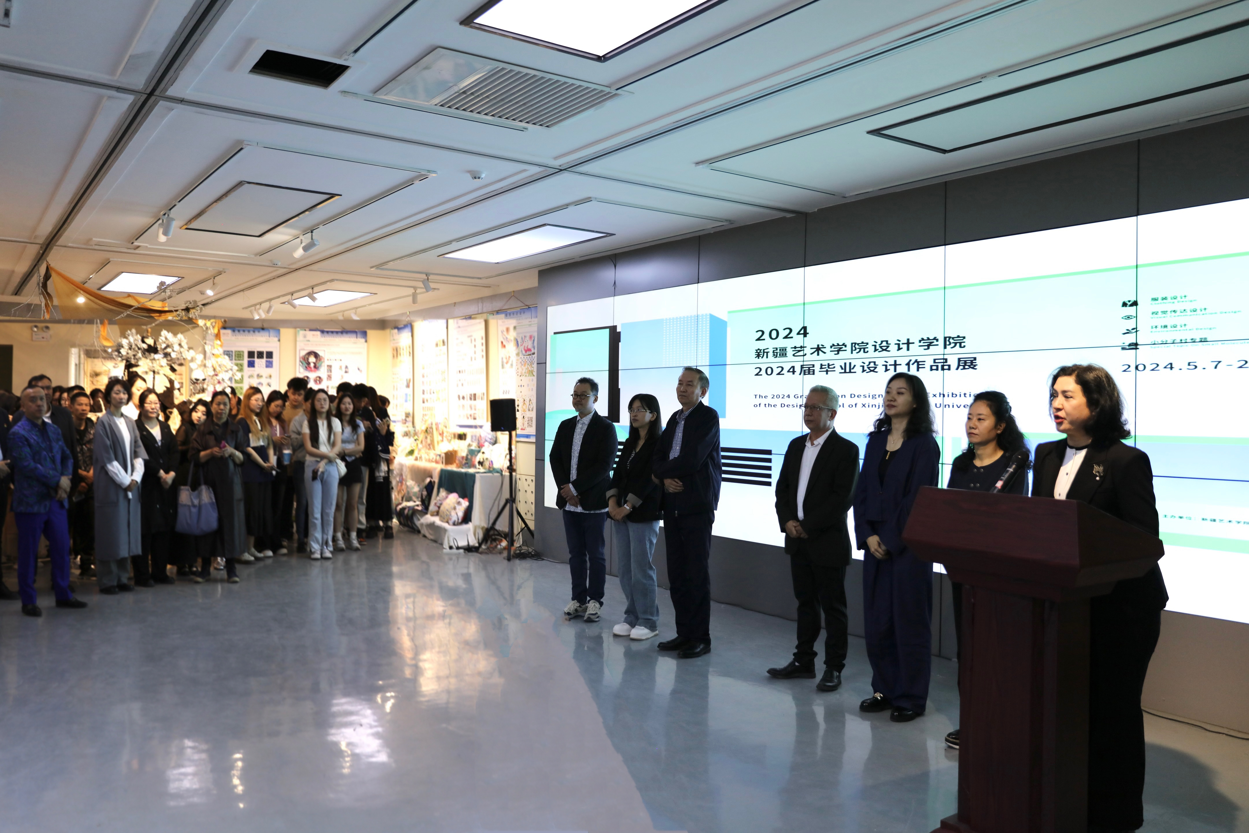 5月7日,设计学院2024届毕业设计作品展在我校美术馆开幕。学校副院长木亚赛尔·托乎提出席并宣布开幕,学校党委常委、统战部部长斯尔哈孜·布兰拜,新疆服装设计师协会会长、中国十佳设计师孙秀琴出席并致辞,乌鲁木齐市、吉木萨尔县、新疆大学等单位相关领导,新疆设计界专家、企业负责人、学校相关单位负责人和设计学院领导班子及专业师生参加开幕式。